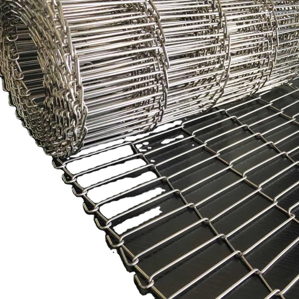 Flat flex conveyor belts are used with a single-layer structure, lighter, the use of sprocket drive. Large open area (opening 70-85%), often used in the lighter weight of the product cooling, frying, baking, drying, heating, decoration, wrapped powder and packaging equipment.